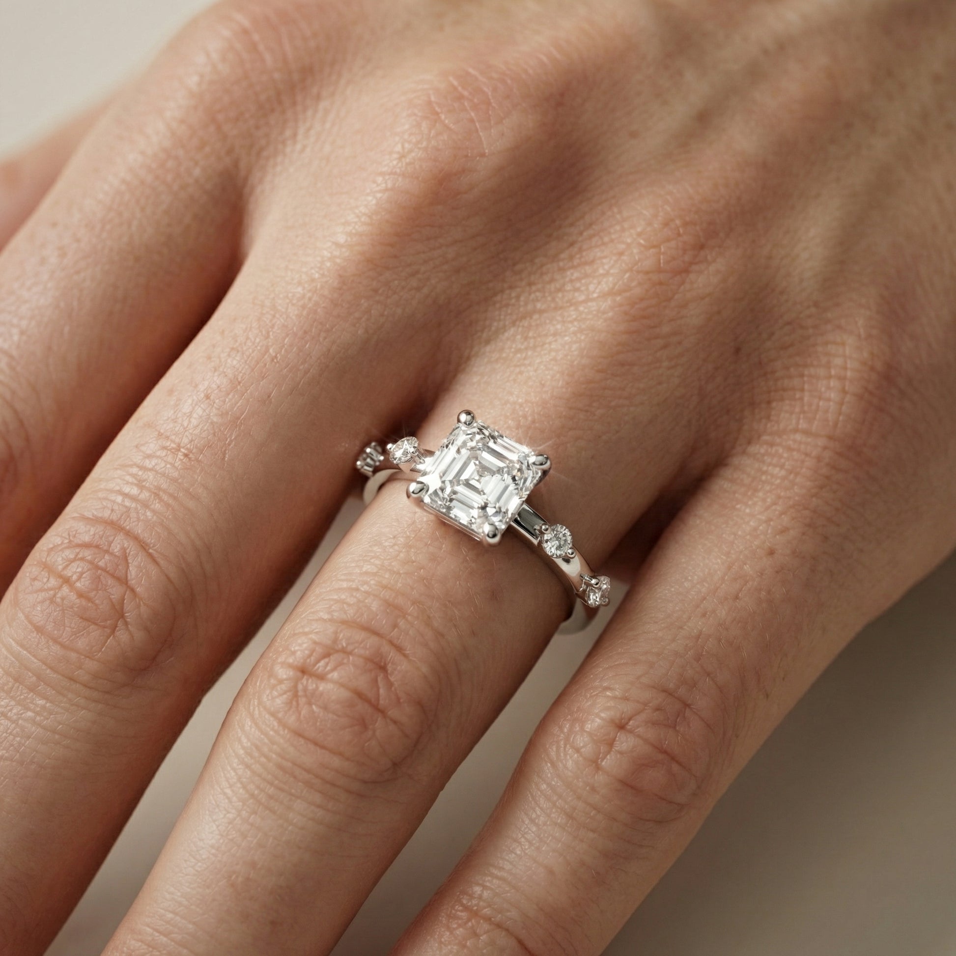 Elena Radiance Solitaire Asscher Diamond Engagement Ring in Silver