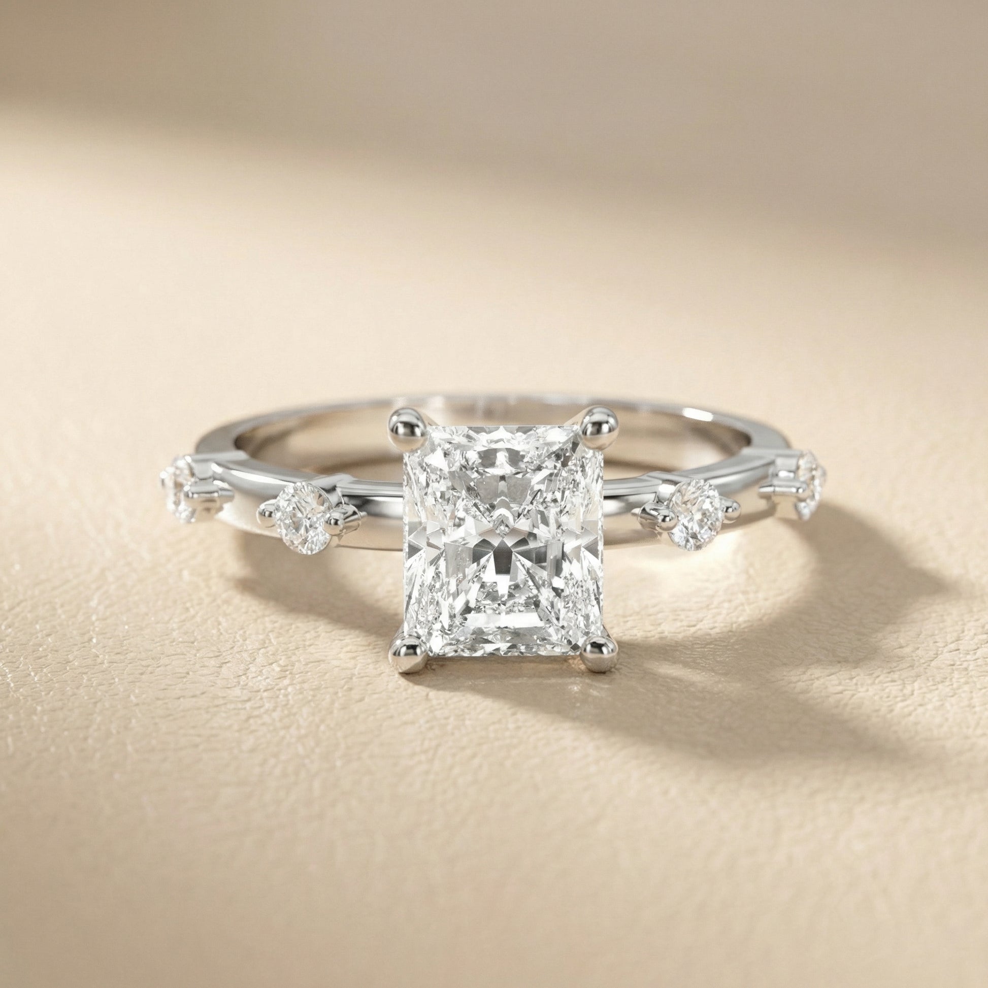Elena Radiance Radiant Diamond Engagement Ring in Silver